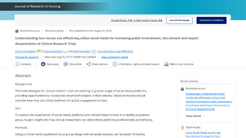 I'm a named author (along with Jessica Eve Jackson, Josh Morton, and Nicole Bartlett) on research I commissioned into how social media can help engage with the public in clinical research.